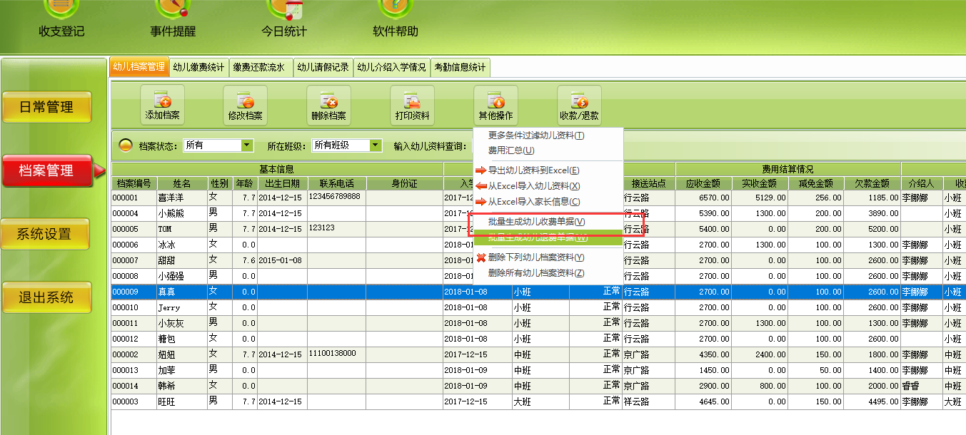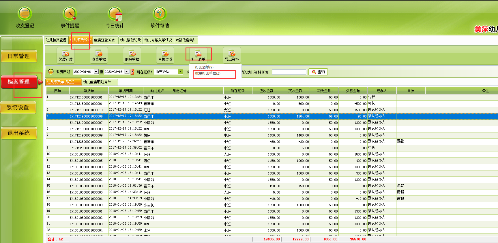 美萍幼儿园管理软件,我有二十个孩子,都可以批量打印出来收费单据吗?完全可以的,如图示: